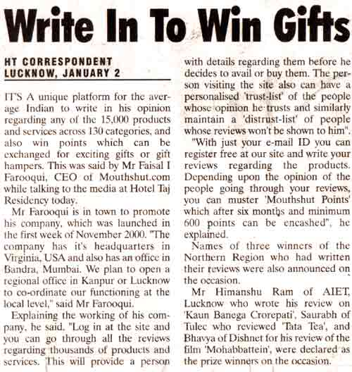 January 2, 2001 Write In To Win Gifts