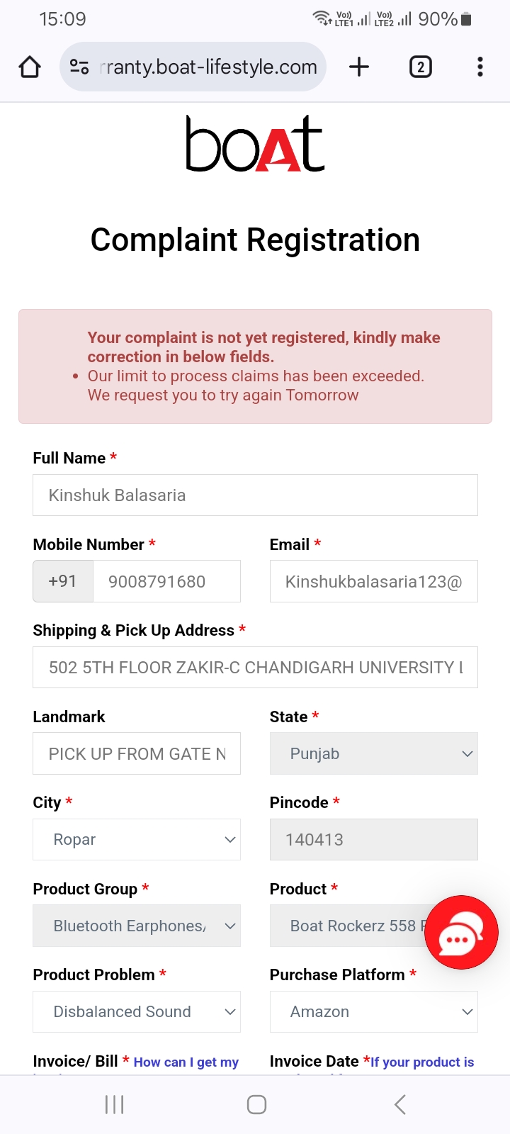 Furthermore, we acknowledge the image you have shared, and we do understnad that you are facing a claim limit issue. Apologies for the inconvenience you had to go through. Since the claim limit has been exceeded, please try registering for a warranty claim tomorrow after 24 hours from the last calim else you can also reach out to the service center for assistance.