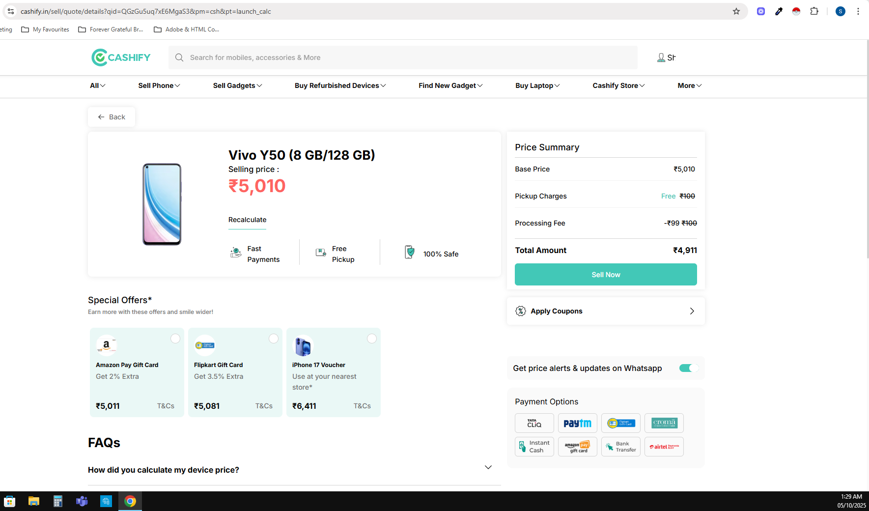 Was looking to sell my VIVO Y50, as you can see from the picture they quoted Rs. 4911 after selecting from the report that I had one dot on my screen. No where it says on their website final price will be decided by field executive who examines the phone upon pickup. Final quotation by Cashify what is given by Cashify at the time of placing pickup should ideally be the amount you should receive. This is such a waste of time and misleading customers. I had arranged 2 different executives, both after coming and examining the phone dropped the price to Rs. 2500. They started negotiating, so I asked the executive who came to pick up the phone to give the same price as what was displayed on Cashify final quotation after selecting appropriate option of dot on the screen. Also, I had a red dot, no where on their website it states red or white dots. The field executive said if you had white dot, I would have paid you the quoted price. Simply made excuses and wasted my time. You're running a business here, not a fish market. The executive came from some local mobile market(Jagdish Market), he called up the mobile shop owner and shared phone details, after which he quoted Rs. 2500. The executive was trying to grab the phone at a lower price, so that he gets high commission in the middle and sell it off to the local mobile shop. Please also note, these executives aren't directly employed by Cashify, they are from a local mobile shop. Where is the transparency? You are completely misleading customers by giving them false commitment of quotation, then giving executive the audacity to negotiate, to top that he is making excuses. Both executives weren't professional at all. I wouldn't recommend anyone to use Cashify, rather if you are looking to get a new phone then exchange your old phone in exchange program online or even exchange at retail stores like Bajaj, Reliance, Vijay Sales. Saves you the hassle. Cashify is not worth it as it's purely a platform just to attract with false commitment.