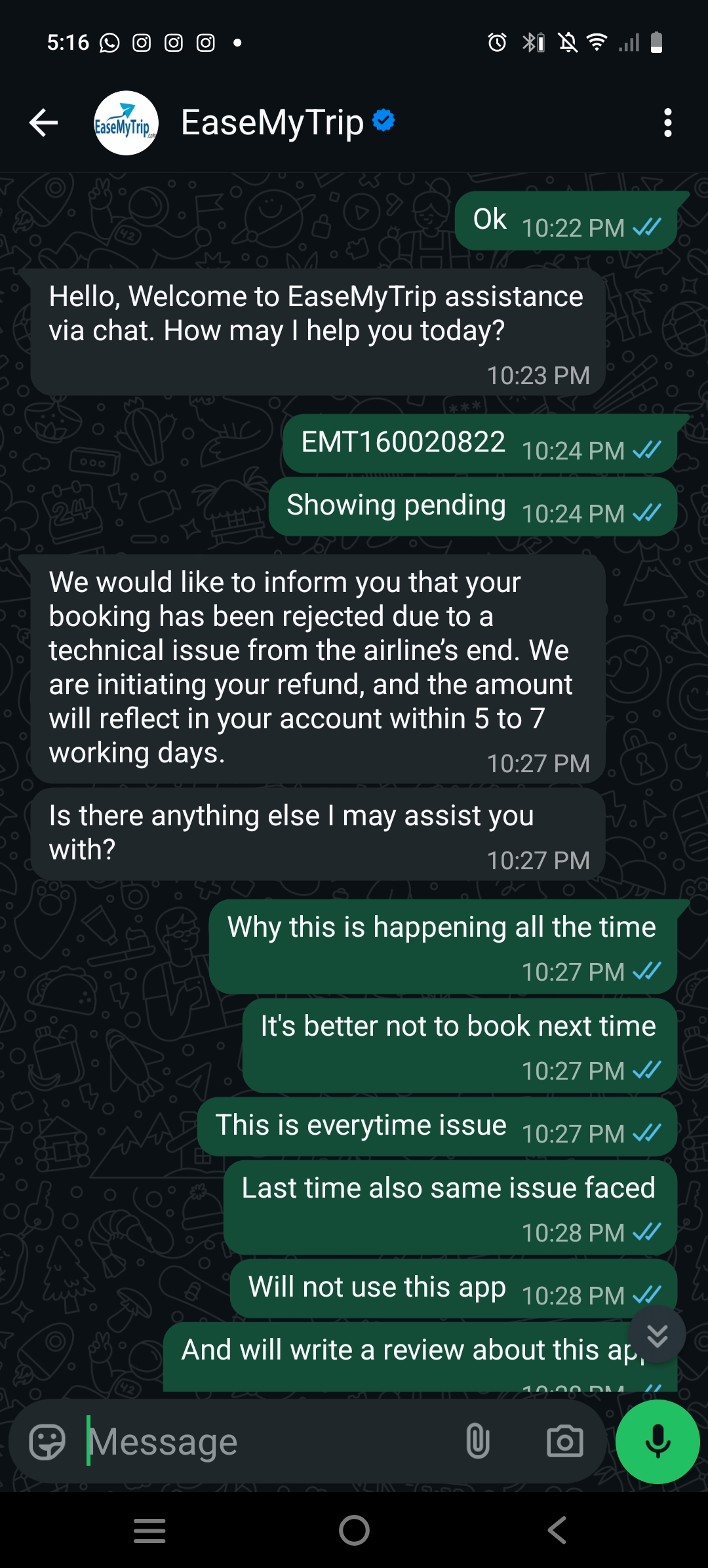 At this point, I genuinely feel this is turning into a pattern if not a scam, then extremely irresponsible handling of customers money. I wonder how many other people are facing the same issue and how much money EaseMyTrip is holding like this.