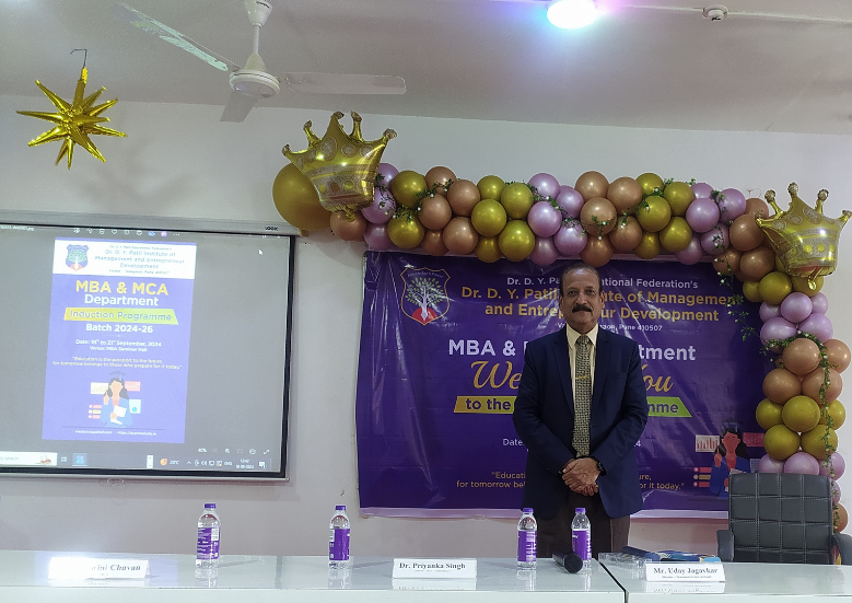 Pune-based Soft Skills Trainer Col Uday Jagavkar conducted a Session for first-year students of MBA and MCA at Dr. Dy Patil Institute of Management & Entrepreneurs.