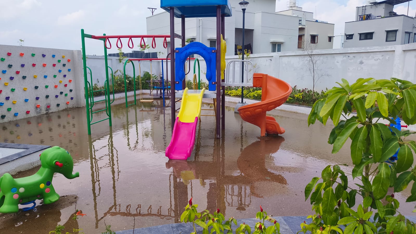 First image is of the cricket pitch which has water stagnant issues so builder god level experienced team and open a gali in it to take out the water.