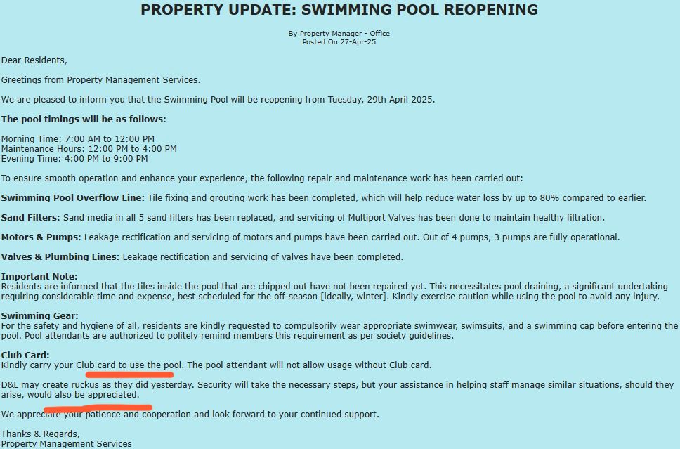 In Rustomjee Urbania project at Thane, ‘D & L wing was launched. During booking, your sales team was showing various amenities, proposed amenities. These amenities are mentioned in the sale agreement. You are morally and contractually bound to provide the amenities to us. 570 customers have believed in the “RUSTOMJEE” brand name, booked the flats, paid the money. When we have started moving in from December 2023 onwards, we were shocked to see that we did not have access to the amenities. We have made multiple attempts of discussing with your team, giving police complaints, visiting police stations, meeting Registrar of Cooperative Housing society, pursuing legal actions, attending Courts, etc. Still, we are at the mercy of “E to K Society” in getting access to the common amenities.