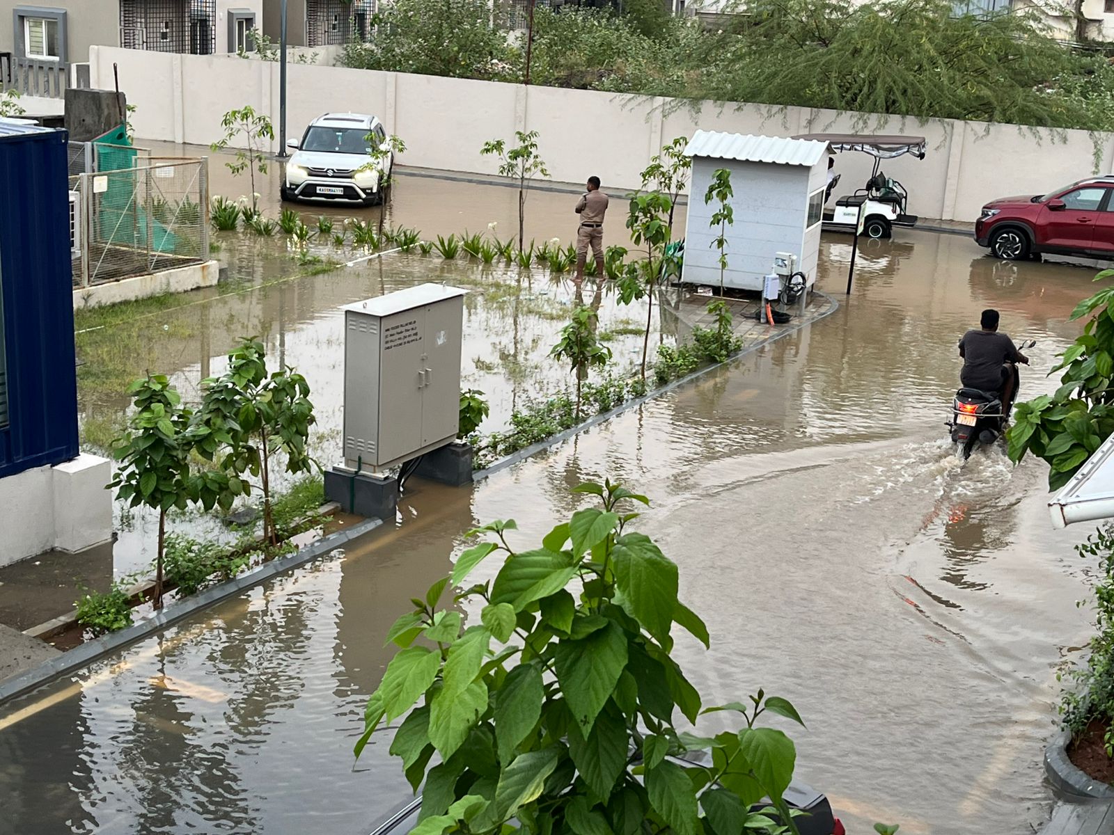 The entrance at Aaranya arch regularly floods with drainage water from the neighboring Shobha project