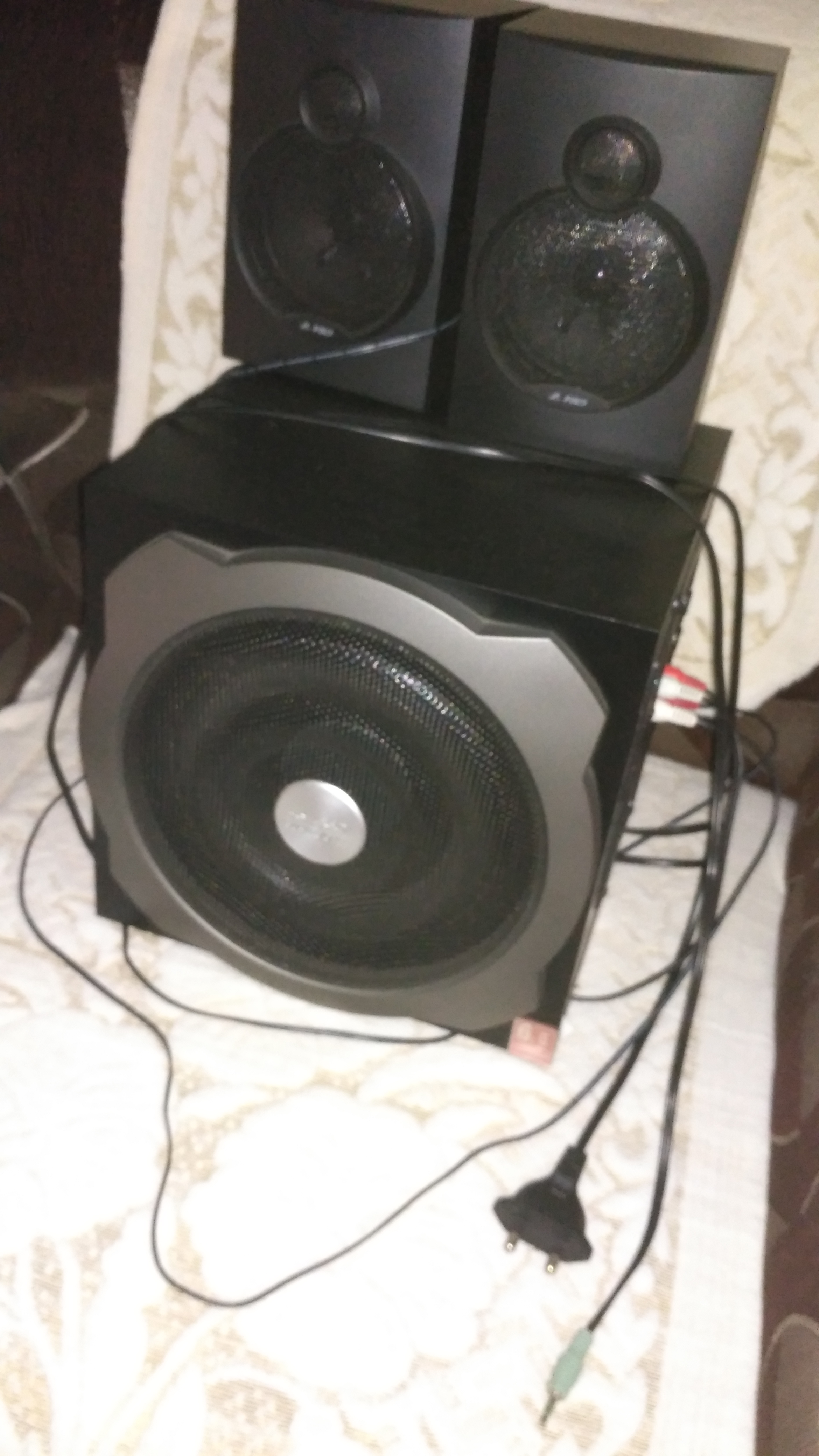 This product has 1 boofer of 6.5 inch and 2 satellite speakers, and has great sound clarity and has high bass and have wooden frames which makes it look nice and durable . It has USB and AUX options so you can connect it with your phone, laptop and tablets. And it designed as beast.