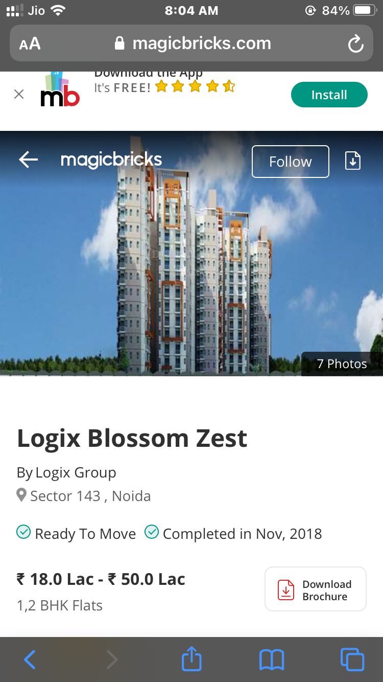 MAGIC BRICKS IN HANDS IN GLOVES WITH CHEAT BUILDERS LIKE LOGIX ZEST OF NOIDA. IT HAS UPLOADED A MISLEADING DECEITFUL AD OF THE PROJECT WHICH IS TOTALLY STALLED BEFORE PANDEMIC. 2500 cheated homebuyers of this project are waiting for home since years! many filed in NCDRC /RERA. project is cash starved. it owes Rs 270 plus crores to Noida authority. Problems with this project that magic bricks is selling as "Completed Project " - You cant register the property, project is incomplete - no amenities like pool/clubhouse, electricity only from gensets! HOW CAN U TRUST A PROPERTY PORTAL IF IT TRIES TO SELL ROTTEN EGGS TO YOU BY DECIET?