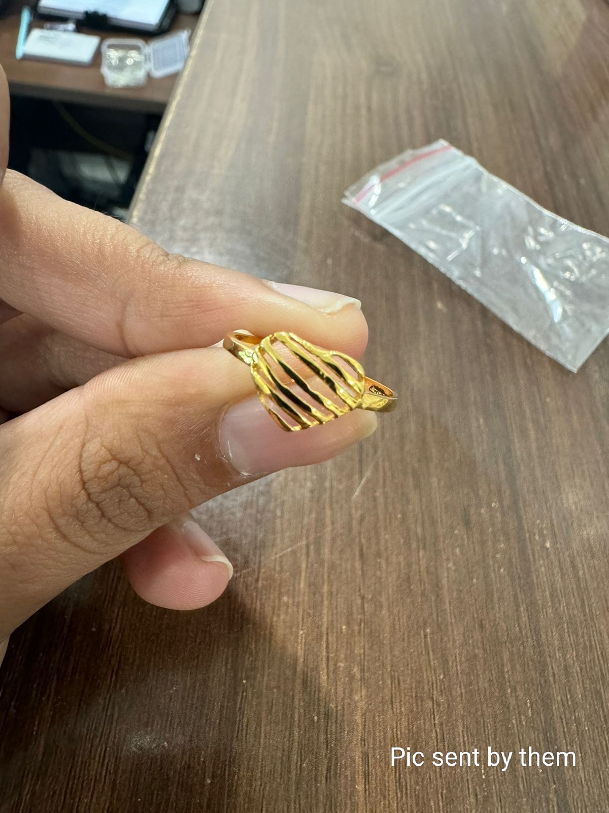 However when I received the ring I got to know as per the invoice the weight was only 0.93gms and the ring was dainty looking not to mention not sturdy. Now I had asked them show me actual pics of the ring before making this but when they show them to you via WhatsApp the images are taken close to the product that it appears bigger than what it actually is. I don't know if this is deliberate but in my opinion the pics should be taken such and fairly so that customers know that they are getting value for their money.
