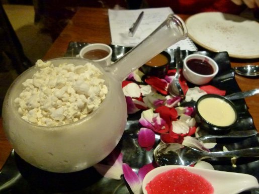 SpiceKlub - Lower Parel - Mumbai Desserts The desserts here are to die for. We were already full after trying all the above-mentioned dishes but were recommended to go for desserts, so we first opted for Bubbling Kulfi. Must say, it was the best I had tried till date. Served in an open-mouth jar, this dry kulfi is presented along with rabdi, blueberry sauce, chocolate, and caramel sauce as toppings. It tasted so yummy that even the thought is mouth-watering. Though our stomach was screaming to burst, we could not resist ourselves from ordering another dessert called ‘Foaming Soap’. This was suggested to us by the attendant. Shaped like a Pears soap, this Ganache sponge cake is served with rasmalai foam on a soap dish making it taste extremely scrumptious. The whole idea behind it is extremely innovative.
